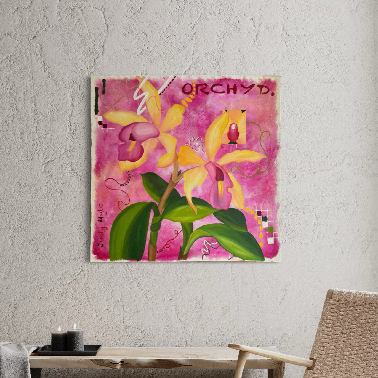 Œuvre originale réalisée à l’acrylique sur toile en coton, enrichie de détails au pastel et de touches brodées à la main avec de la laine tricotée.